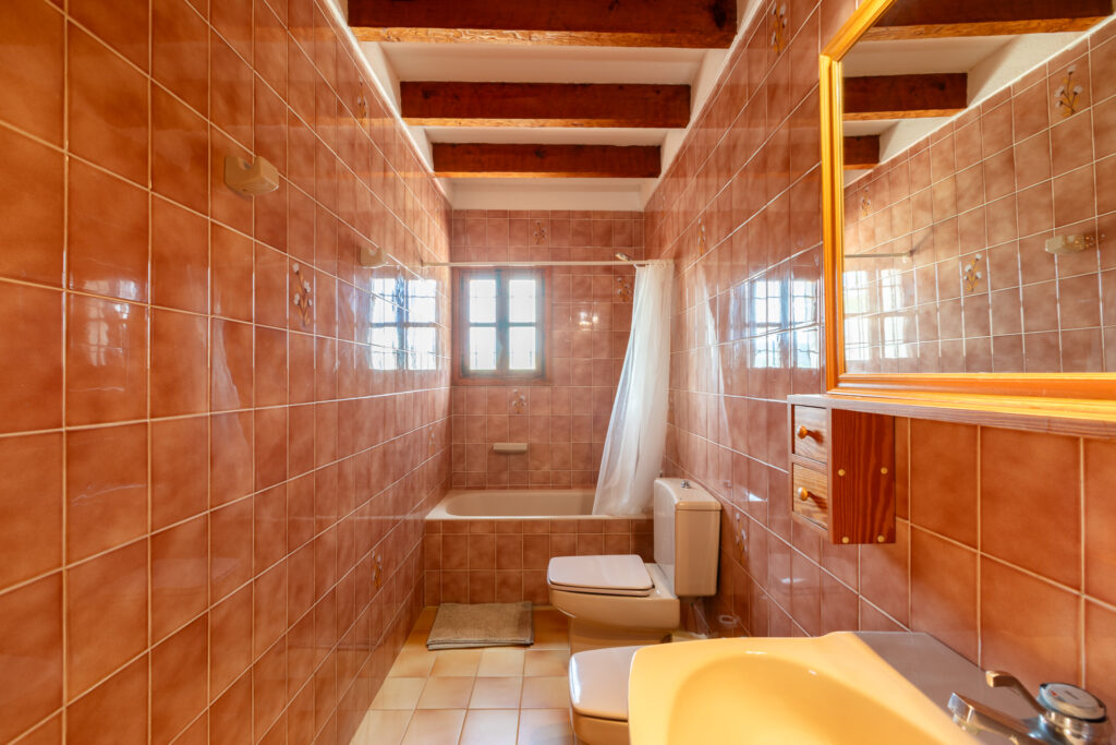 The house has two levels and a large living room with a huge fireplace. On the ground floor there are two double bedrooms, a living room with views of the porch, a dining room with the possibility of using the old oven, a service bathroom with a shower, a kitchen and a large living room with a fireplace. On the first floor, there is a triple room, a double bedroom, a single bedroom and a bathroom with a bathtub. In addition, it has two large terraces with views of the Ibizan countryside and Dalt Villa.