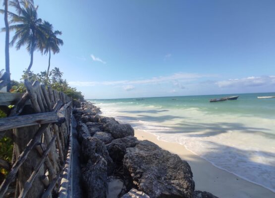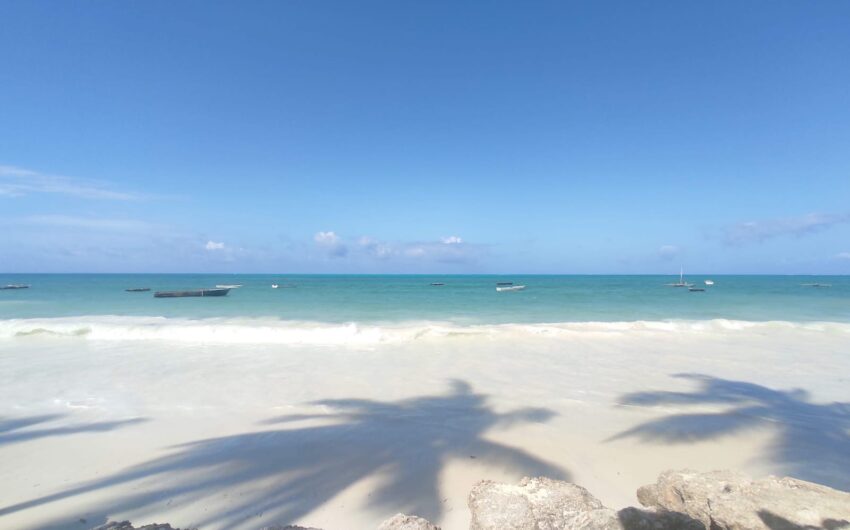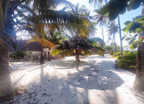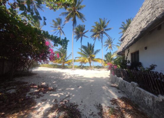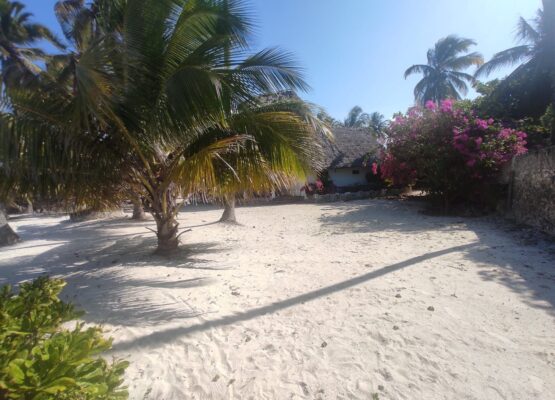 This magnificent 2,095-square-meter beachfront plot is the perfect postcard from Zanzibar. White sand, coconut trees, and those wonderful frangipani trees with their fragrant white flowers, available water (connection to the village water and well) and electricity